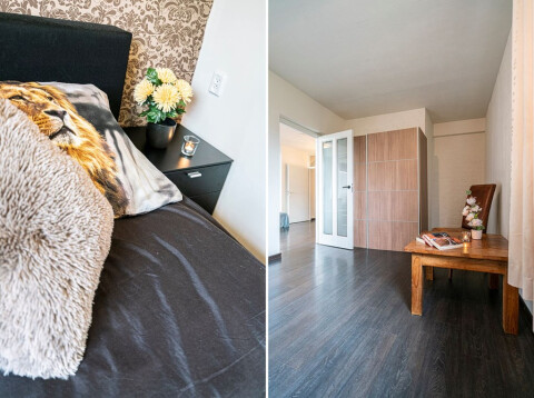 De slaapkamer is te bereiken vanuit de living en treft u aan de voorzijde van het appartement. Ook deze ruimte is royaal opgezet en biedt voldoende ruimte voor het plaatsen van een 2-persoons bed en een kast. U heeft zelfs ruimte over voor bijvoorbeeld het plaatsen van een bureau of een relax plek. De afwerking is netjes en in gelijke stijl als de rest van het appartement, wat voor EENHEID zorgt.